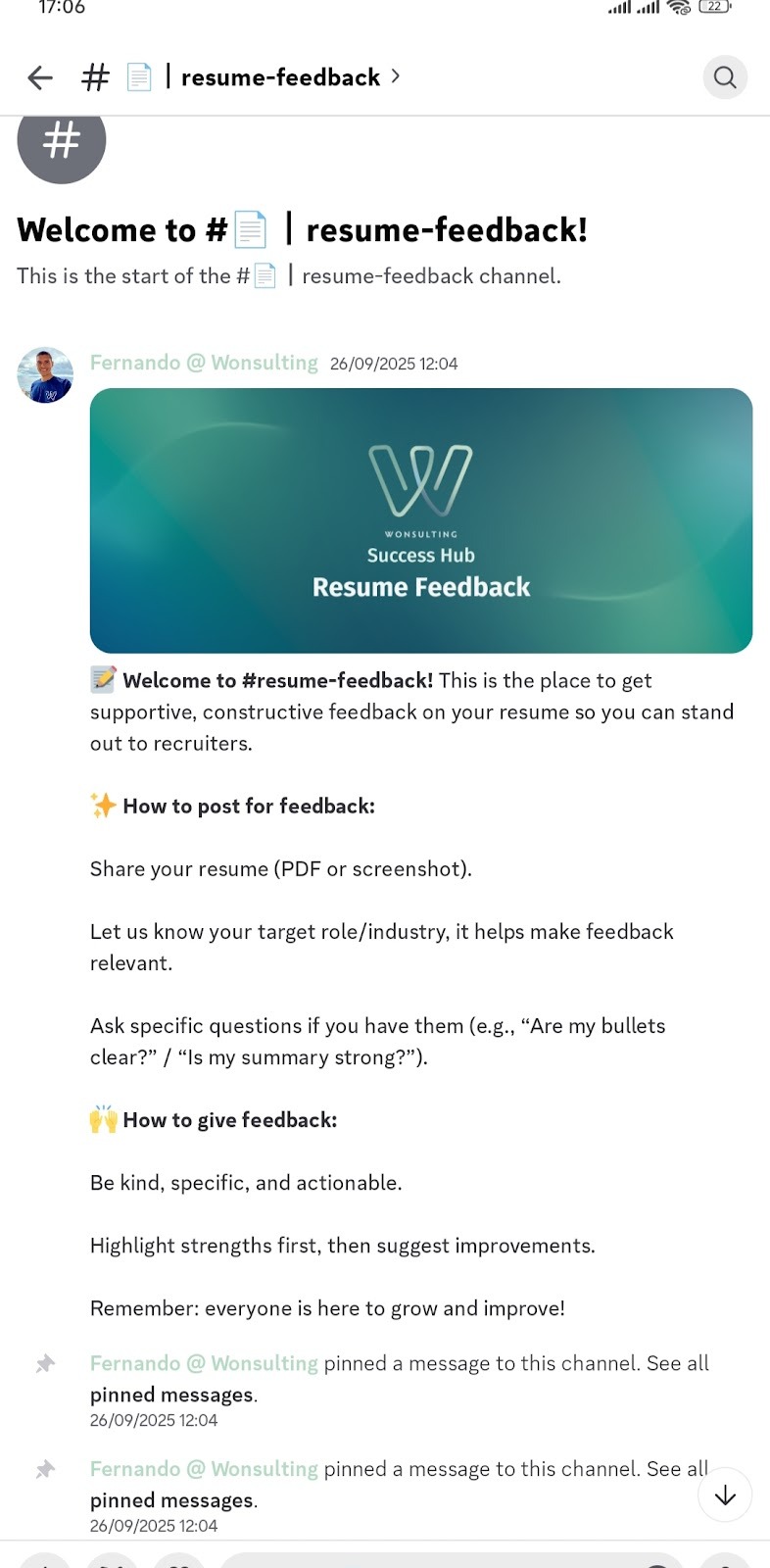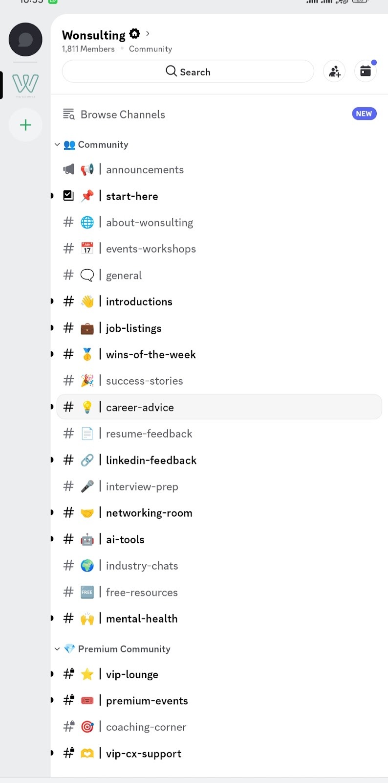 Thousands of job seekers, coaches, and career experts are already inside the Wonsulting Discord Community. They're asking questions, getting feedback, and actually moving forward. No more Googling at 2 AM.Â